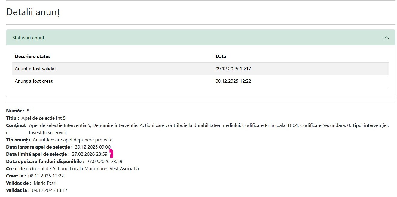 Anunț lansare apel de selecție Interventia 3 Servicii pentru populația locală - postat în data de 09 decembrie 2025